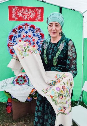 Арча милли аяк киемнәре фабрикасында эшләүче тәҗрибәле чигүче Фәридә Кәримуллина.