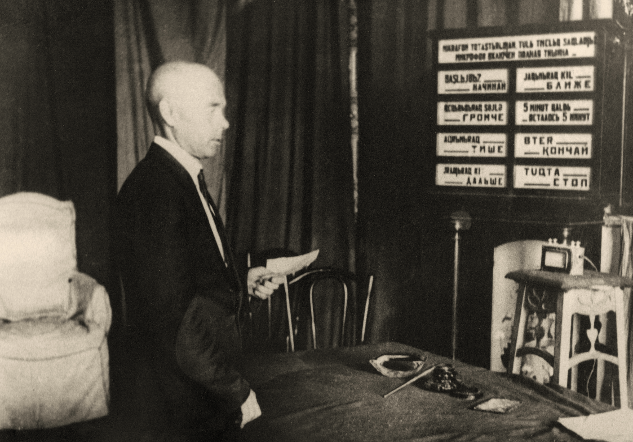 1928 елда Казанга атаклы рус шагыйре Владимира Маяковский килә. Опера һәм балет театрында аның белән очрашу кичәсе үткәрелә. Кичә турыдан-туры эфирга бирелә. Маяковский ялкынланып шигырь укыганда бер мәлгә туктала да, сәхнәдәге радио микрофонына ишарәләп, “Монда мине күбрәк халык тыңлый!” – дип куя.
